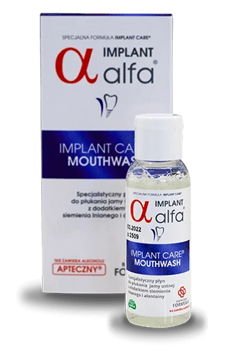 Płyn do płukania jamy ustnej ALFA Implant dedykowany jest do stosowania po zabiegach chirurgicznych w obrębie jamy ustnej.