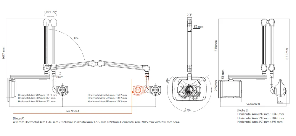 ⦁ Długość ramienia: 450/600/900 mm