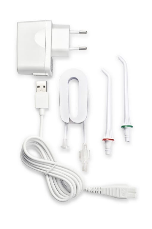 - Niewielki rozmiar urządzenia oraz zbiornik, który może być wykorzystany jako etui na końcówki i przewód systemu Double Aqua Flow to optymalne rozwiązanie dla osób podróżujących lub posiadających małą łazienkę,