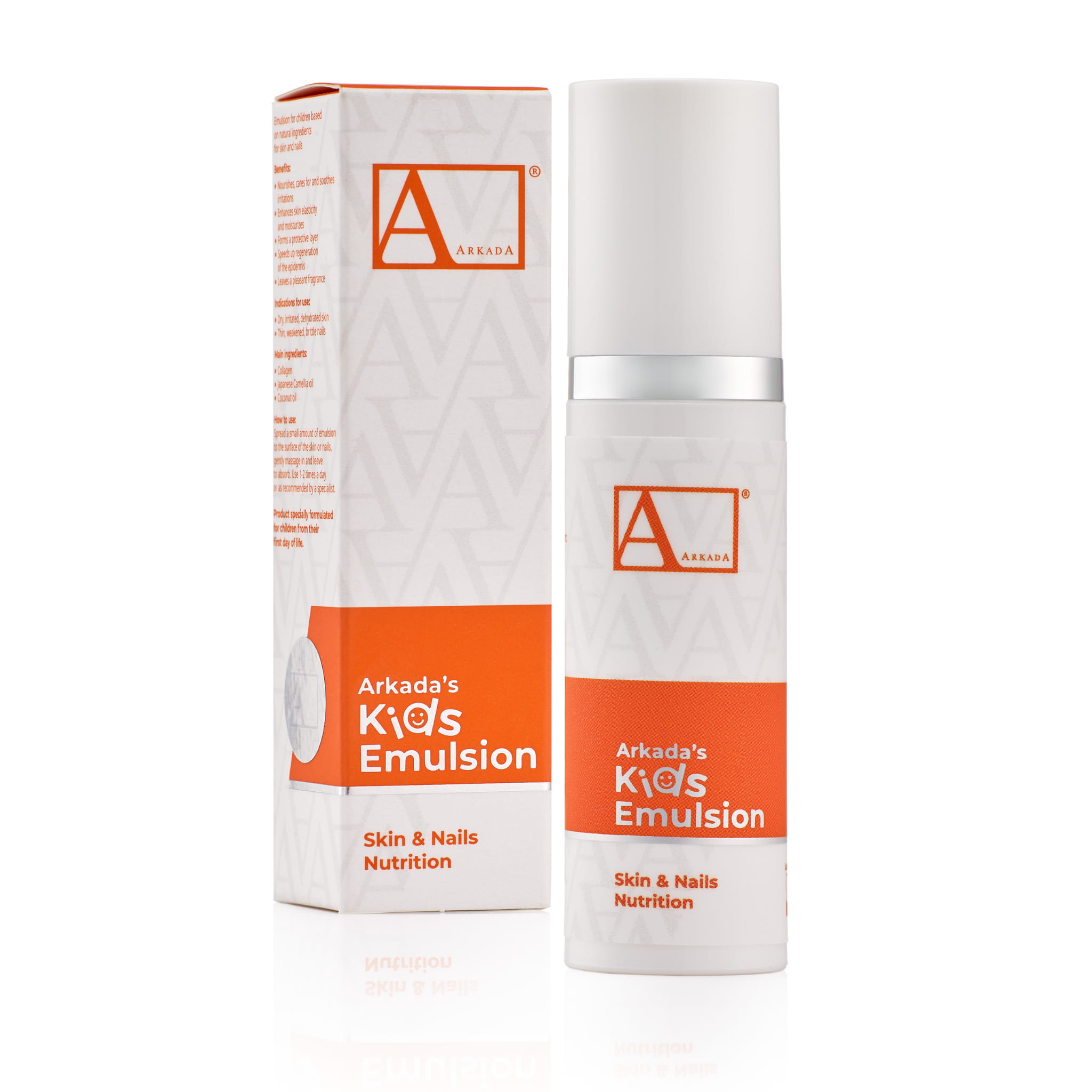 Arkada’s Kids Emulsion to profesjonalna emulsja opracowana z myślą o delikatnej i wymagającej skórze najmłodszych. Jej naturalna formuła – zawierająca kolagen, olej z nasion kamelii japońskiej oraz olej kokosowy – intensywnie nawilża, chroni i wspiera regenerację skóry oraz paznokci, nie powodując podrażnień.