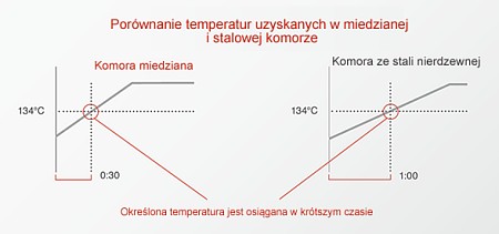Miedziana komora i łatwo przystosowujący się system grzewczy pozwalają na sterylizację