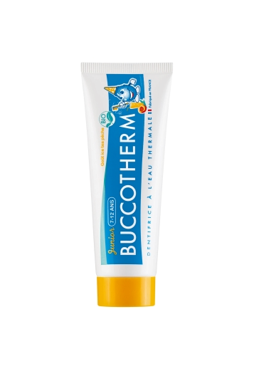 - Ekologiczna pasta dla dzieci Buccotherm BIO zawiera 98% składników pochodzenia naturalnego. Jej główny składnik to woda termalna o właściwościach remineralizujących, łagodzących i przeciwzapalnych. Pasta ma przyjemny smak Ice Tea Peach.