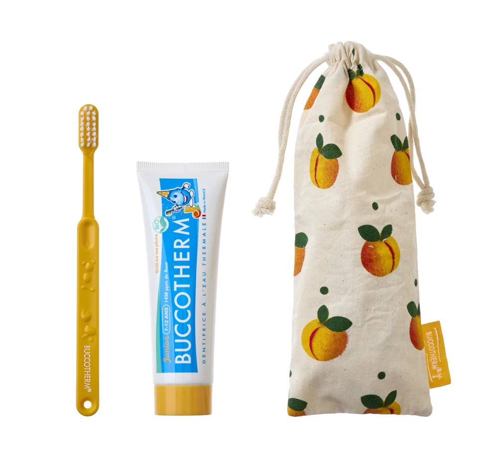posiada certyfikat ORGANIC. Skomponowana jest w 98% ze składników pochodzenia naturalnego. Zapewnia maksymalną ochronę przed próchnicą i dba o zdrowie dziecięcych dziąseł. Głównym składnikiem pasty jest woda termalna ze źródeł Castéra-Verduzan (Francja). Wykazuje ona szereg właściwości leczniczych, działa przeciwzapalnie, remineralizująco oraz chroni dziecięce zęby przed działaniem kwasów, dzięki zasadowemu pH. Ma przyjemny owocowy smak Ice Tea Peach.