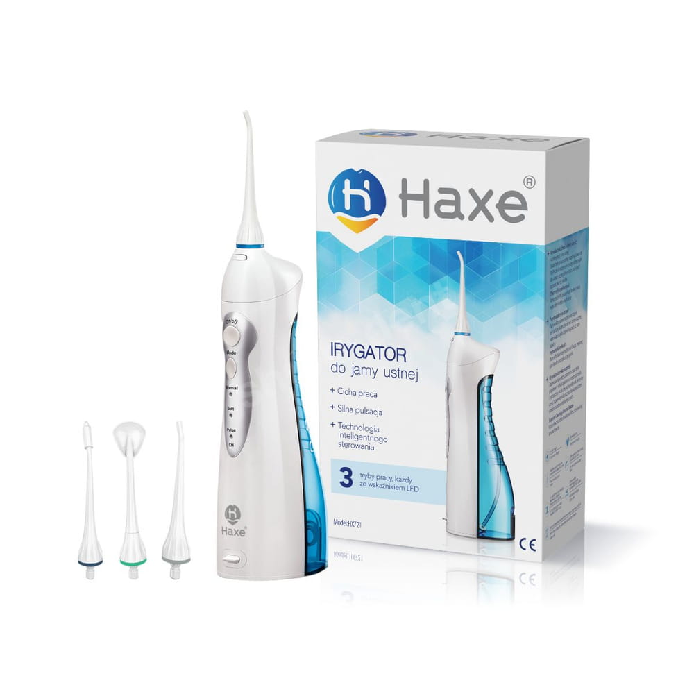 Bezprzewodowy irygator Haxe HX721 to świetne uzupełnienie codziennej higieny jamy ustnej. Wspomaga on usuwanie płytki nazębnej, bakterii i drobinek pokarmowych z trudno dostępnych miejsc. Dzięki 3 trybom pracy o różnej mocy ciśnienia, irygator doskonale sprawdzi się do oczyszczania przestrzeni międzyzębowych, ułatwi pielęgnację jamy ustnej osobom noszącym aparat ortodontyczny, a także sprawdzi się u osób, które mają wrażliwe dziąsła. Irygator jest lekki i nie zajmuje dużo miejsca. Sprawdzi się do użytku domowego, ale też w podróży służbowej czy na wakacjach.