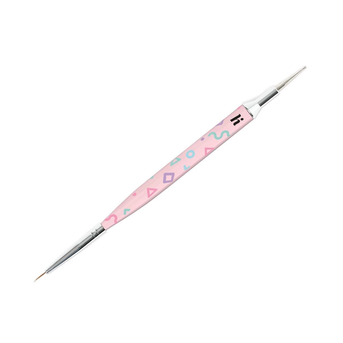 Hi multibrush do manicure hybrydowego posiada dwie różne końcówki. Jedna strona zakończona jest cieniutkim pędzelkiem, a druga sondą z kulką umożliwiającą usuwanie lakieru hybrydowego ze skórek.