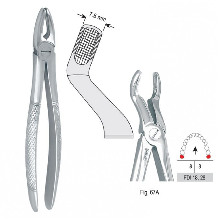 Kleszcze ekstrakcyjne mod. Europejski do zębów mądrości górnych fig. 67A