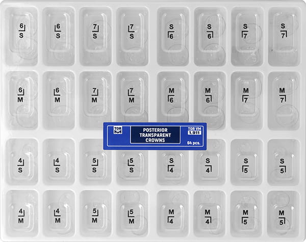 Korony celuloidowe przezroczyste do zębów tylnych (op. 64 szt.)