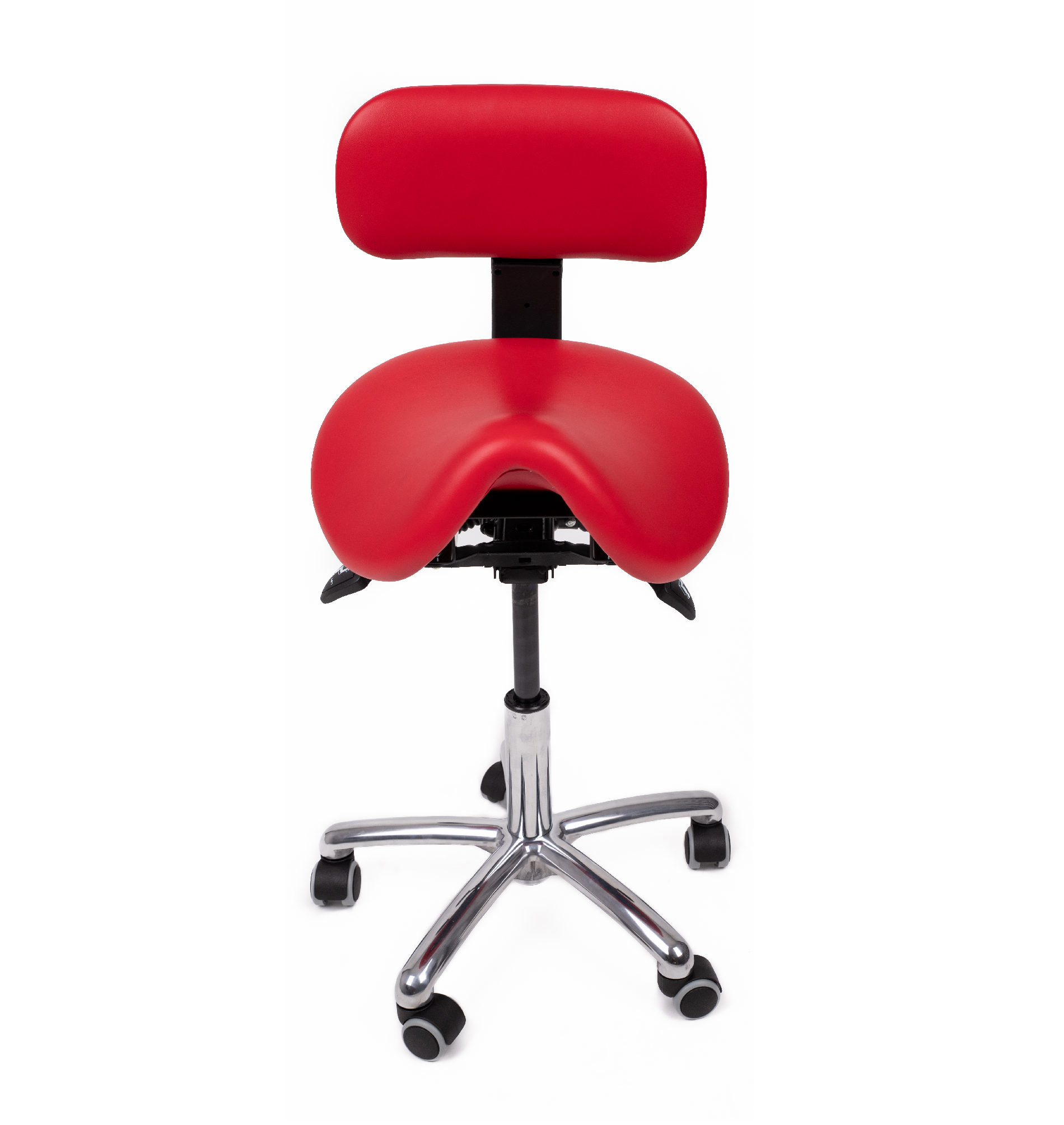 Krzesło dentystyczne KR 03 typu „siodło” przeznaczone dla lekarzy stomatologów. Możliwość regulacji wysokości siedziska, wysokości oparcia, a ponadto pochylenia oparcia oraz pochylenia siedziska.