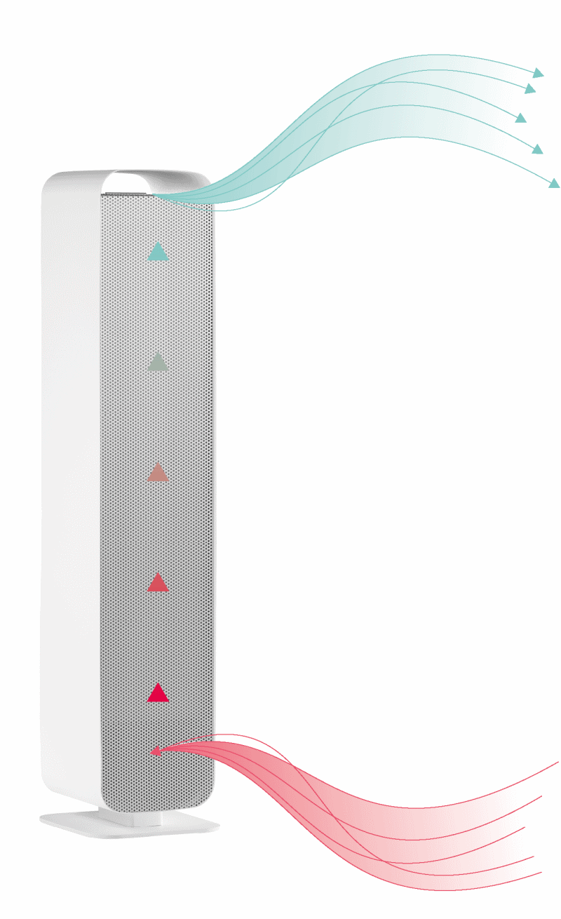 Dzięki wymuszonej cyrkulacji, powietrze przechodzi przez wnętrze lampy, gdzie zostaje naświetlone i zdezynfekowane, a następnie wyparte na zewnątrz. Osłonięte światło UV-C nie wydostaje się na zewnątrz lampy, dzięki czemu może ona być wykorzystywana w pomieszczeniach, gdzie trzeba bezpiecznie i skutecznie zdezynfekować powietrze w obecności ludzi.