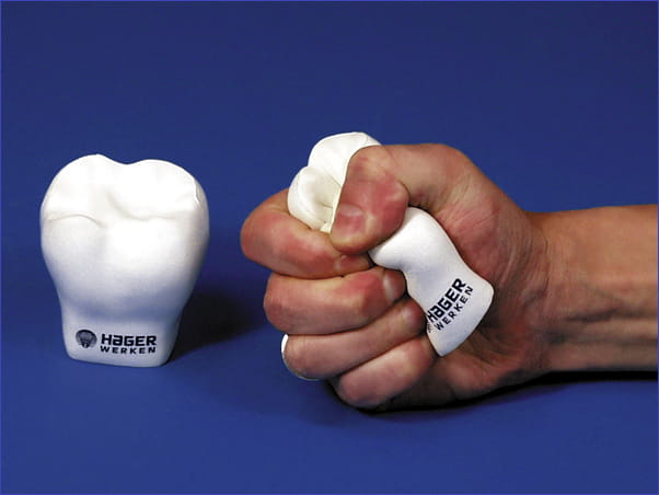 Ściskanie zęba podczas leczenia doskonale odpręża i uspokaja. Ząb antystresowy uspakaja również dzieci w trakcie wizyty u dentysty.