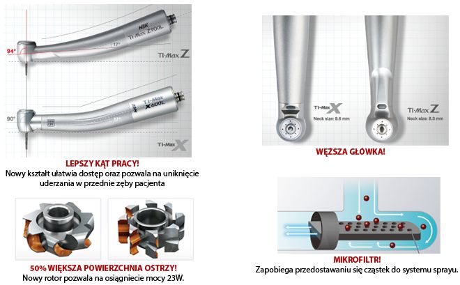 Firma NSK w produktach najwyższej jakości, jak seria Z, zastosowało filtr wodny do wyłapywania drobin, które mogą uszkodzić kątnicę.