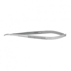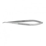 Igłotrzymacz Castroviejo wygięty o długości 18 cm.