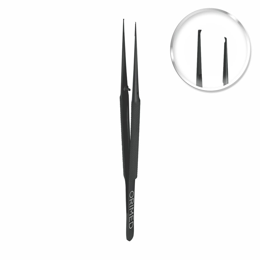 PĘSETA MIKROCHIRURGICZNA - CZARNA CERAMIKA, PROSTA, ZĄBKI 1X2, DŁ. 18 CM