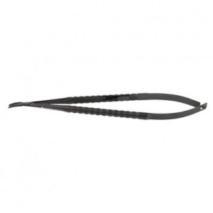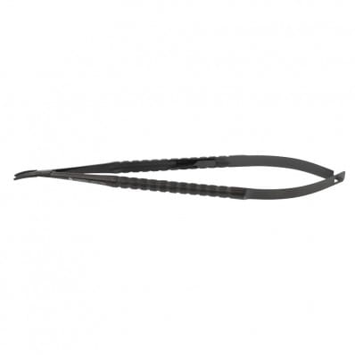 w ofercie igłotrzymacz Castroviejo TC, wygięty, dł. 18 cm z okrągłą rączką.
