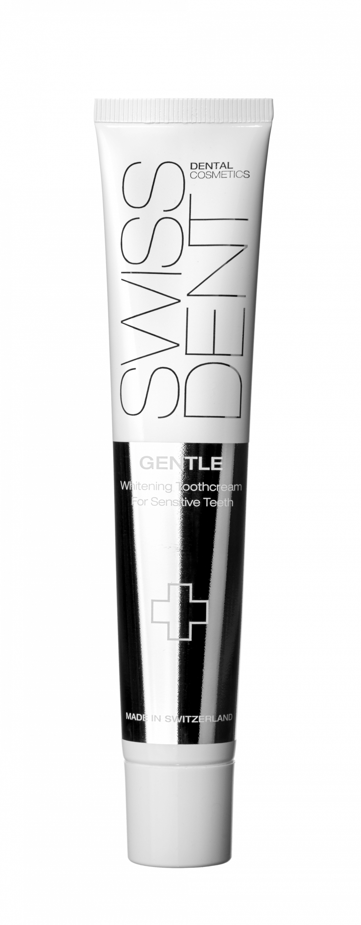 Szwajcarska pasta do zębów SWISSDENT GENTLE ma na celu rozjaśnienie powierzchni zęba poprzez połączenie enzymów i mikronizowanej formuły nadtlenkowej bez użycia krzemianów o wysokiej wartości ścieralności zębiny (RDA). Dobrze działający skład z naturalnych enzymów papainy i bromelainy jest połączony z opatentowanym mikronizowanym nadtlenkiem wapnia w bezpiecznym stężeniu 0,1%. Naturalne enzymy uzyskane z ananasa i papai skutecznie usuwają białkową warstwę na powierzchni zęba, a mianowicie płytkę nazębną i zewnętrzne zabarwienie. Mikronizowany nadtlenek wapnia działa również między kryształami szkliwa, a reakcja chemiczna sprawia, że cząsteczki pigmentu stają się bardziej przezroczyste.