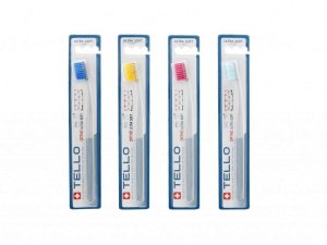 Specjalistyczna szczoteczka do zębów Tello 4920 Ortho przeznaczona jest dla osób noszących stałe aparaty ortodontyczne. Na każdej główce szczoteczki znajduje się aż 4920 miękkich włókien o średnicy 0,12 mm w czterech wariantach kolorystycznych. Miękkie i gęste włosie efektywnie czyści zęby, co jest szczególnie trudne przy stałych aparatach, a charakterystyczny rowek ułatwia dopasowanie do zamków. Przy produkcji tej szczoteczki wykorzystano innowacyjną technologię Nollex, dzięki której włókna szczoteczki nie odkształcają się. To idealna propozycja dla osób, które mają wrażliwe dziąsła, a ultramiękkie włosie delikatnie masuje, poprawia ukrwienie oraz kondycję podatnych na podrażnienia miejsc. Skutecznie usuwa płytkę nazębną. A to gwarancja zdrowego i pięknego uśmiechu.